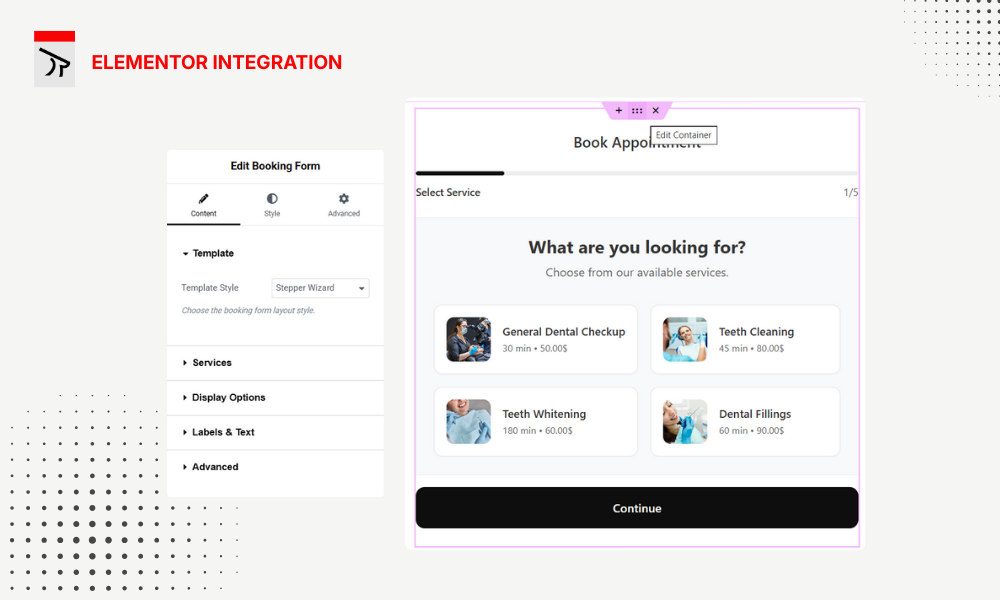 * Elementor — Drag the “Booking Form” widget.